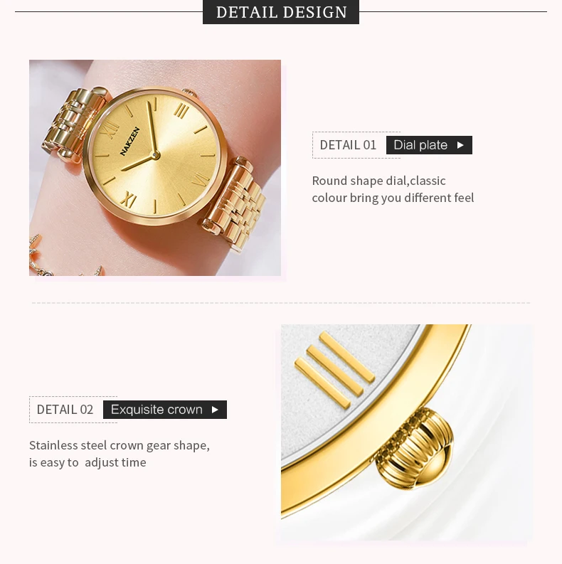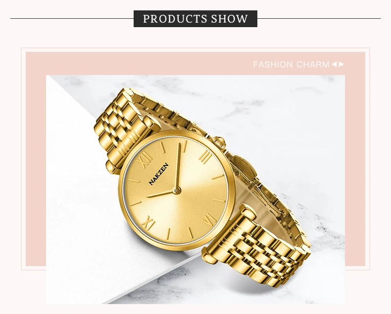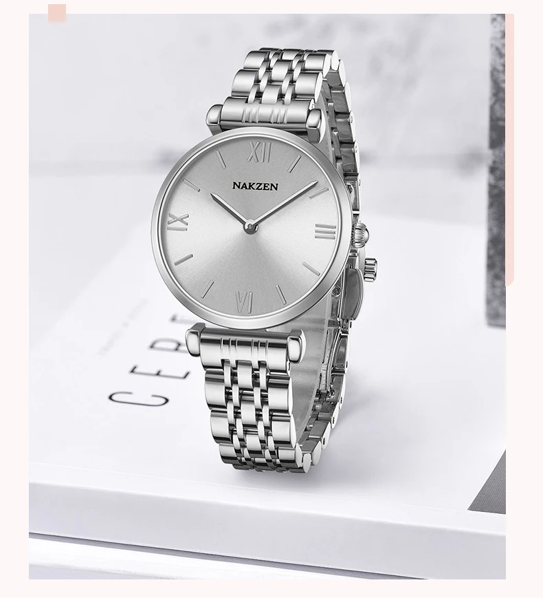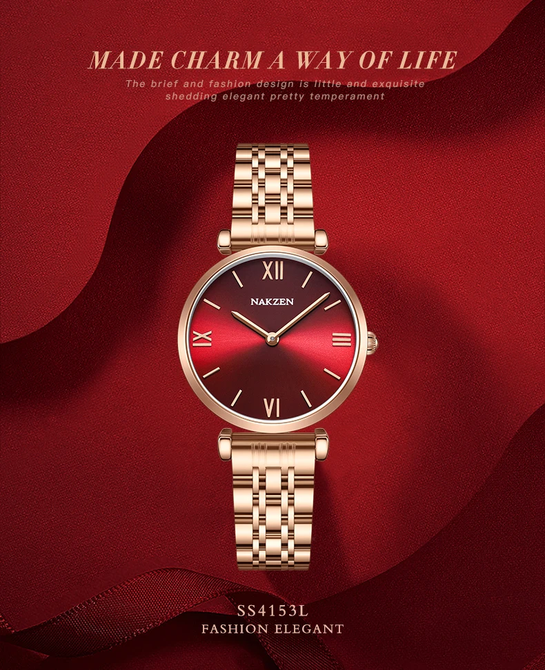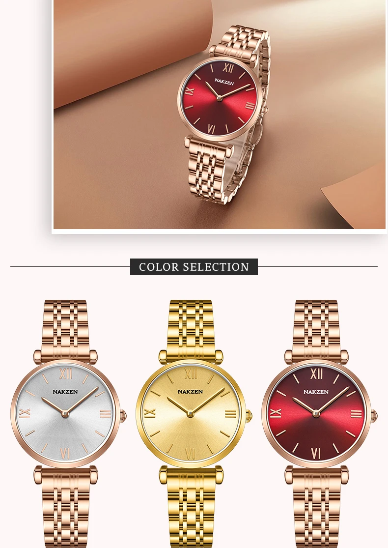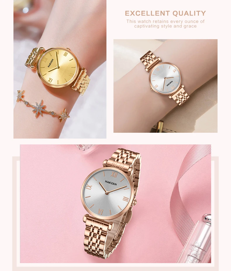 2021 New NAKZEN Luxury Crystal Watch Women Waterproof Rose Gold Steel Strap Ladi
