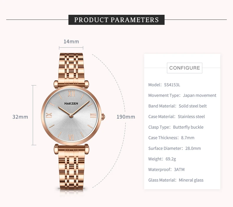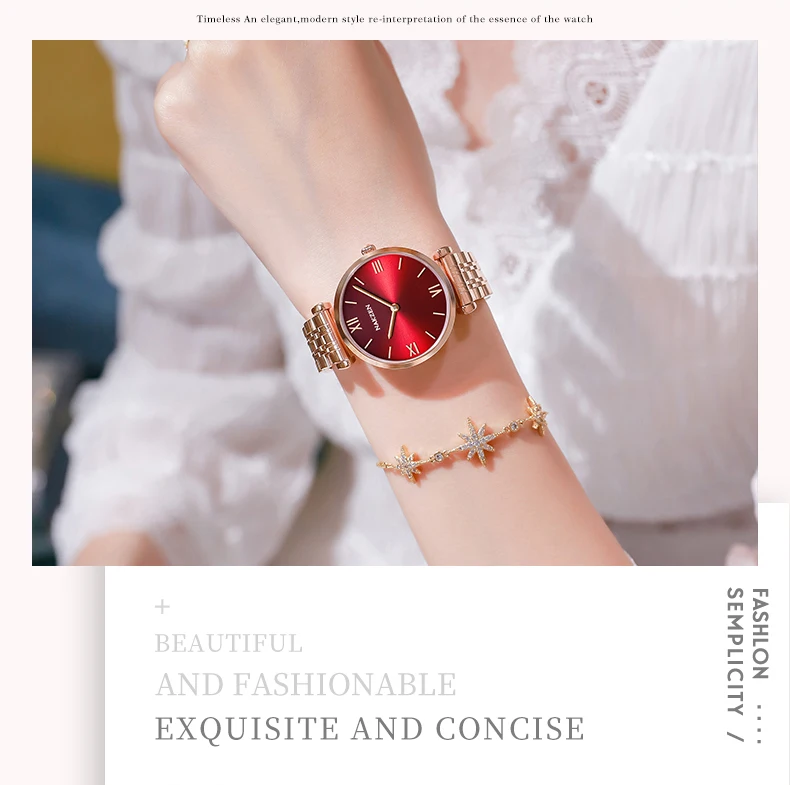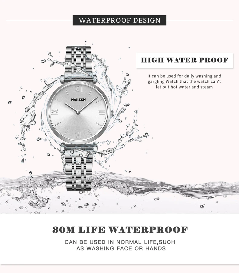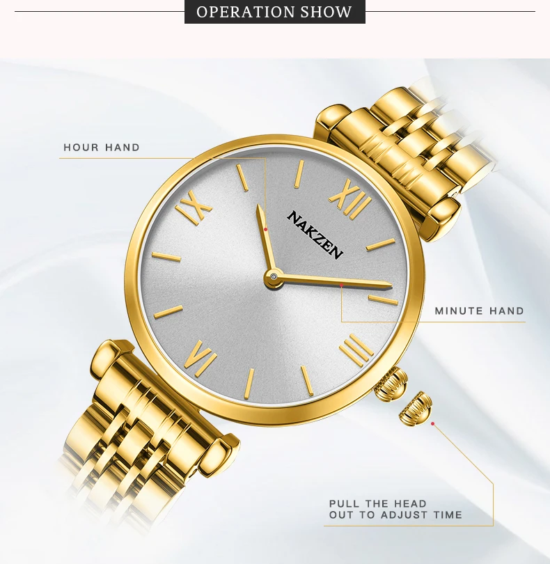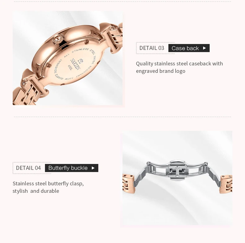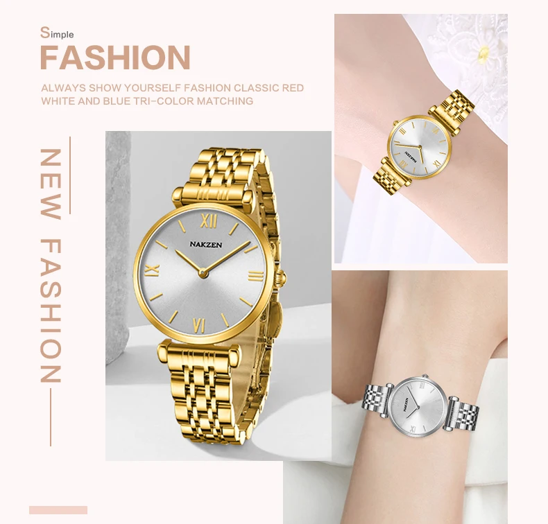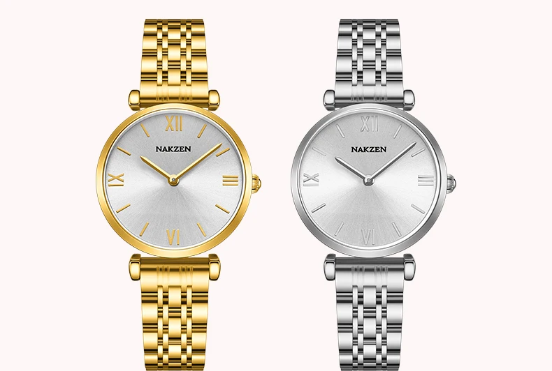 2021 New NAKZEN Luxury Crystal Watch Women Waterproof Rose Gold Steel Strap Ladi