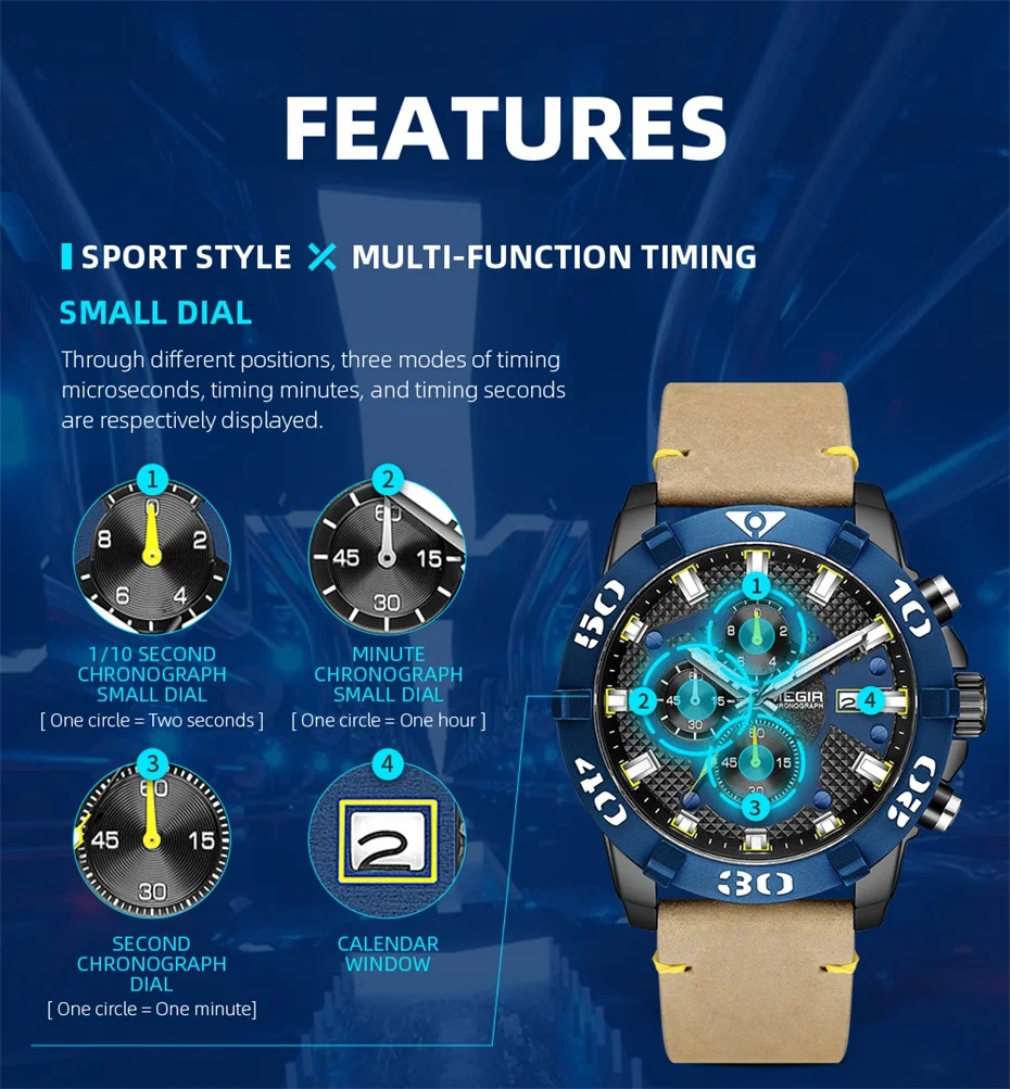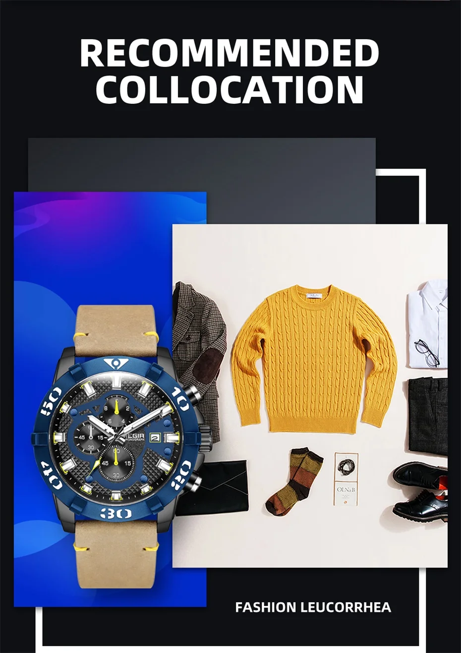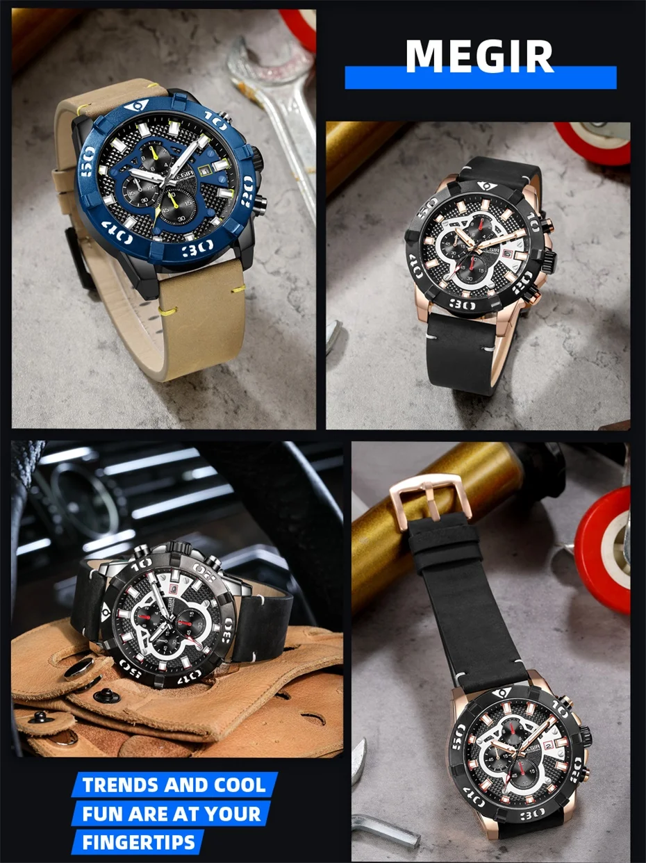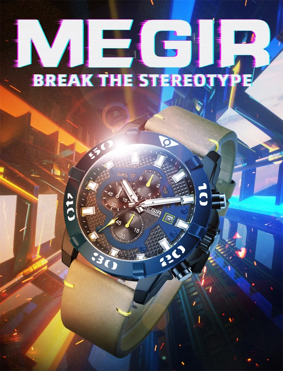 MEGIR Men Watches Fashion Luxury Big Dial Sports Watches Waterproof Quartz Wrist